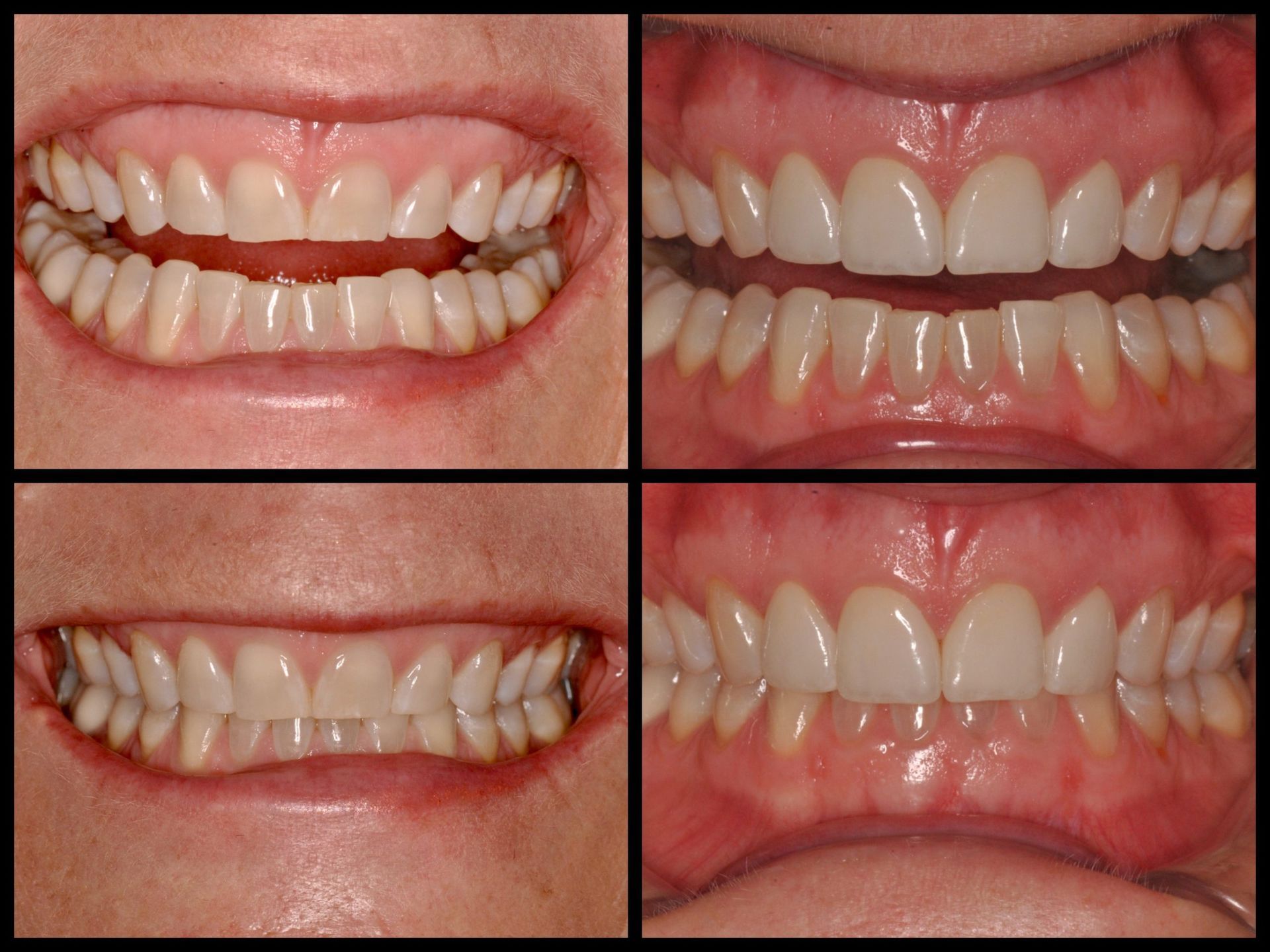 - Bottom picture is the final close up of the 4 new porcelain veneers showing Becky’s beautiful and natural smile.